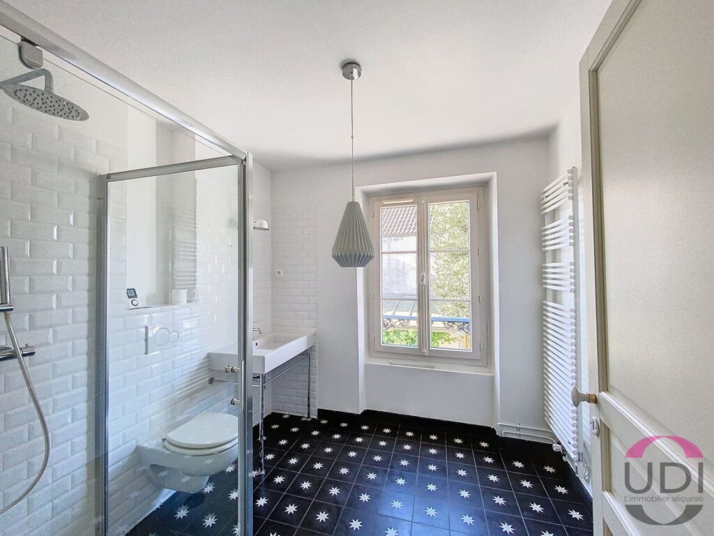 Les éléments architecturaux préservés (tomettes, carreaux de ciment, hauteur sous plafond) apportent une finition élégante et singulière à l’ensemble.