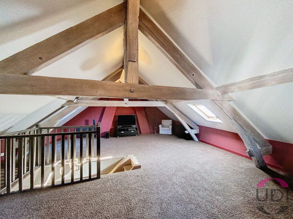 Les combles : Une pièce spacieuse et isolée, sublimée par une magnifique charpente, offrant un espace polyvalent unique.