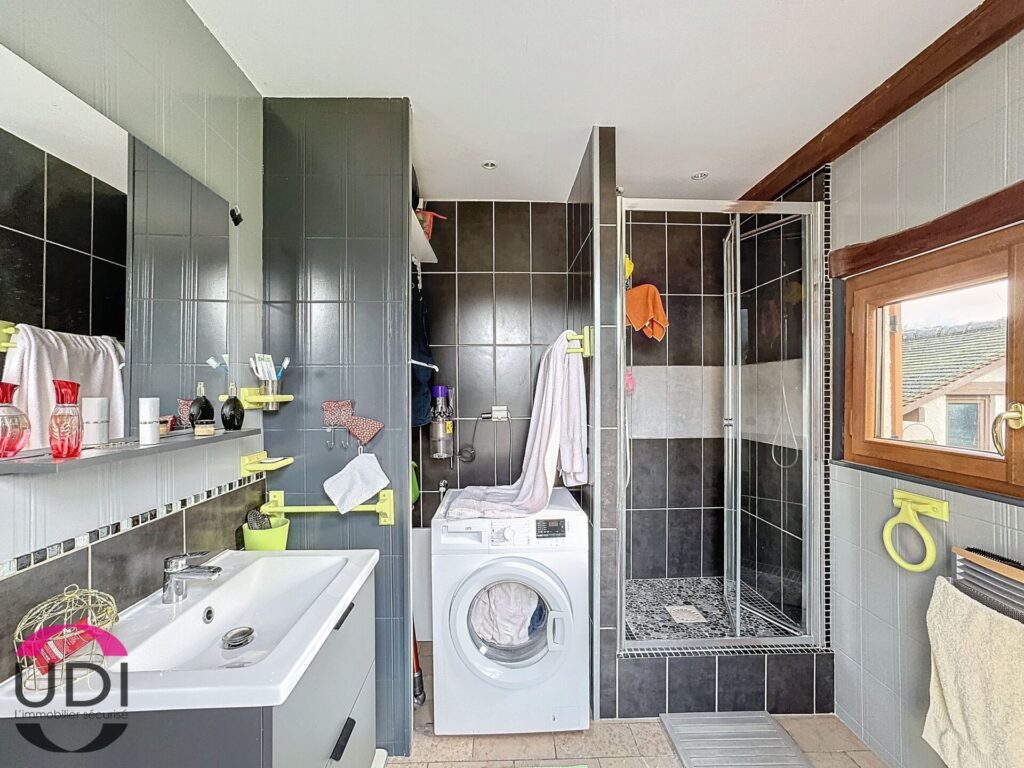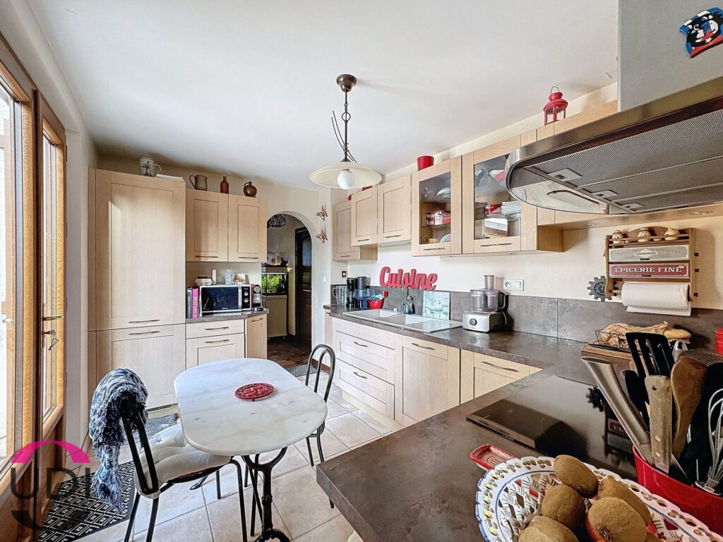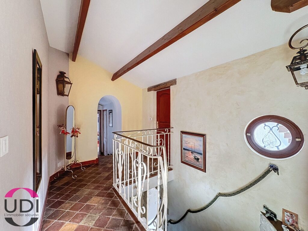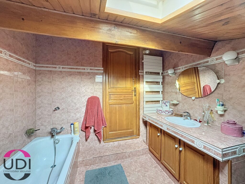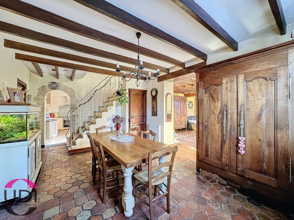 – Au rez-de-chaussée : entrée, salle à manger, séjour double avec cheminée, cuisine équipée, salle d’eau avec espace buanderie, wc séparé