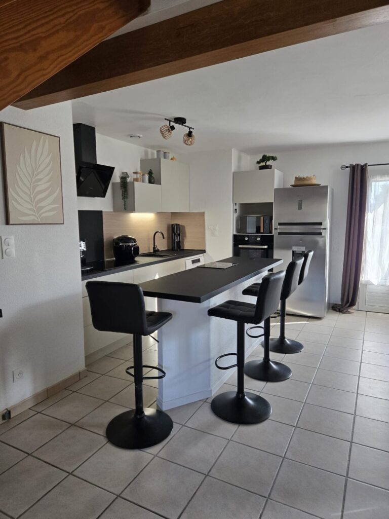 Composée d’un vrai petit cocon pour pièce de vie de 40 m² avec plafond cathédrale et une cheminée avec insert, l’ensemble baigné de lumière par sa triple exposition et sa lumière traversante. Une jolie cuisine neuve, fonctionnelle, aménagée et équipée.