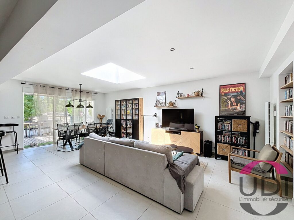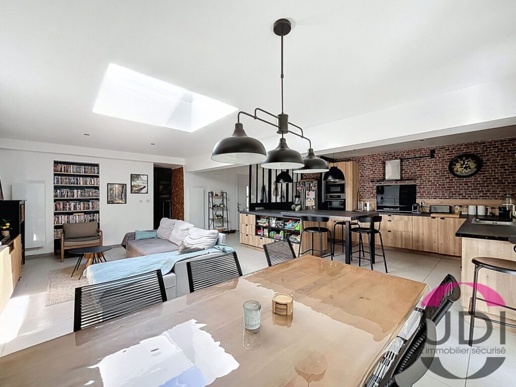 – Au rez de chaussée, une entrée un séjour salon cuisine équipée de 43m², un dégagement, un wc, une chambre avec salle d’eau ;