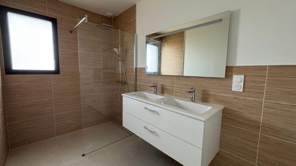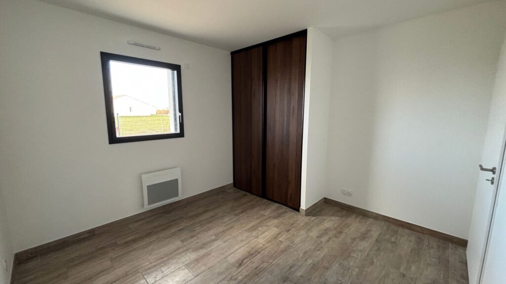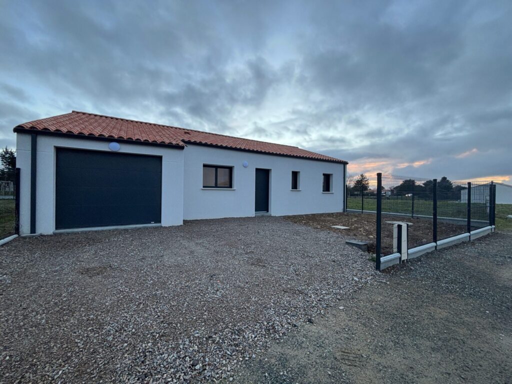 Charmante maison individuelle neuve de 83,45 m², construite en 2025, elle offre 3 chambres avec emplacement placards, un séjour lumineux avec une clim réversible, un emplacement pour une cuisine, une belle salle d’eau avec douche à l’italienne, double vasque et sèche serviette, un garage avec porte électrique isolé du sol au plafond de 25,51m2, une terrasse avec espace extérieur clôturé, ainsi qu’un accès avec un portillon sur un chemin donnant accès à la piste cyclable.