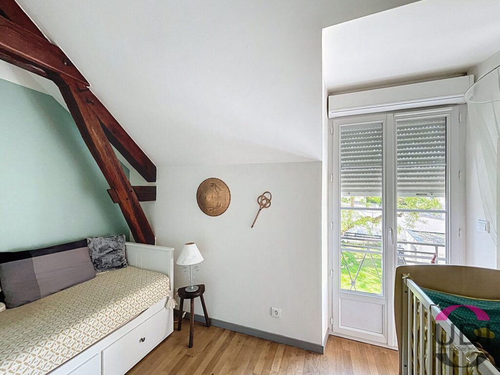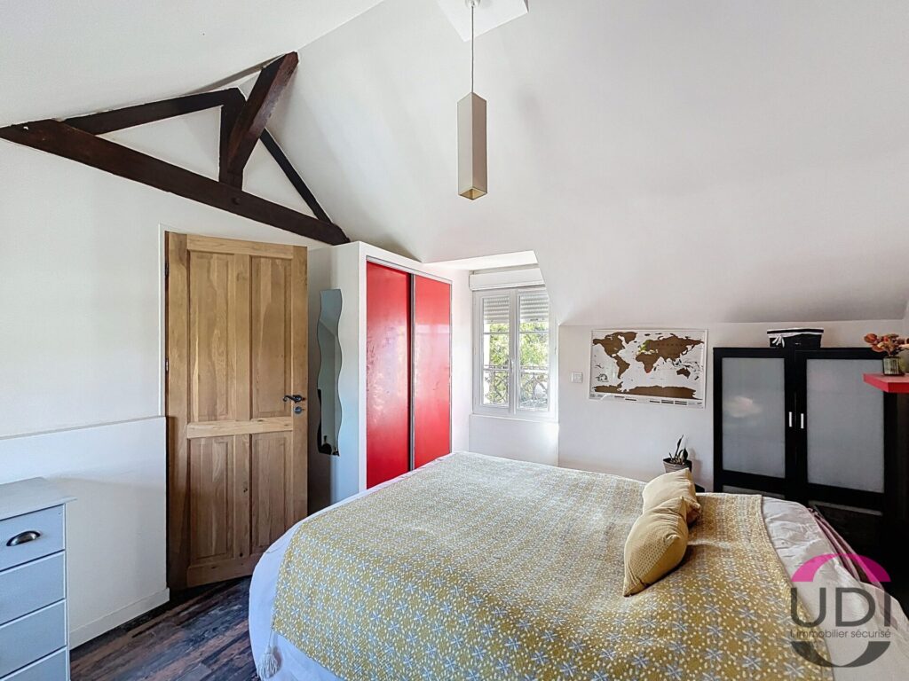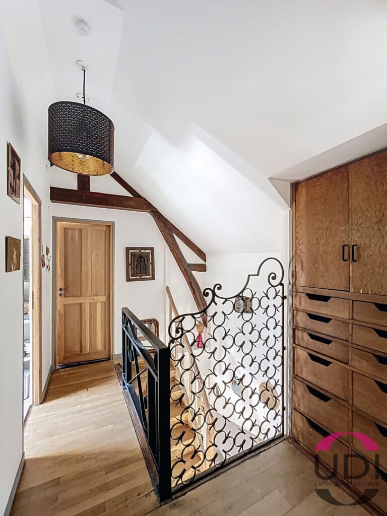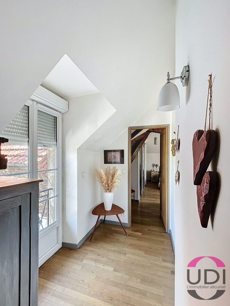 À l’étage : Un dégagement desservant 3 chambres, dont 2 spacieuses avec rangements intégrés, ainsi qu’une salle de bains avec WC.