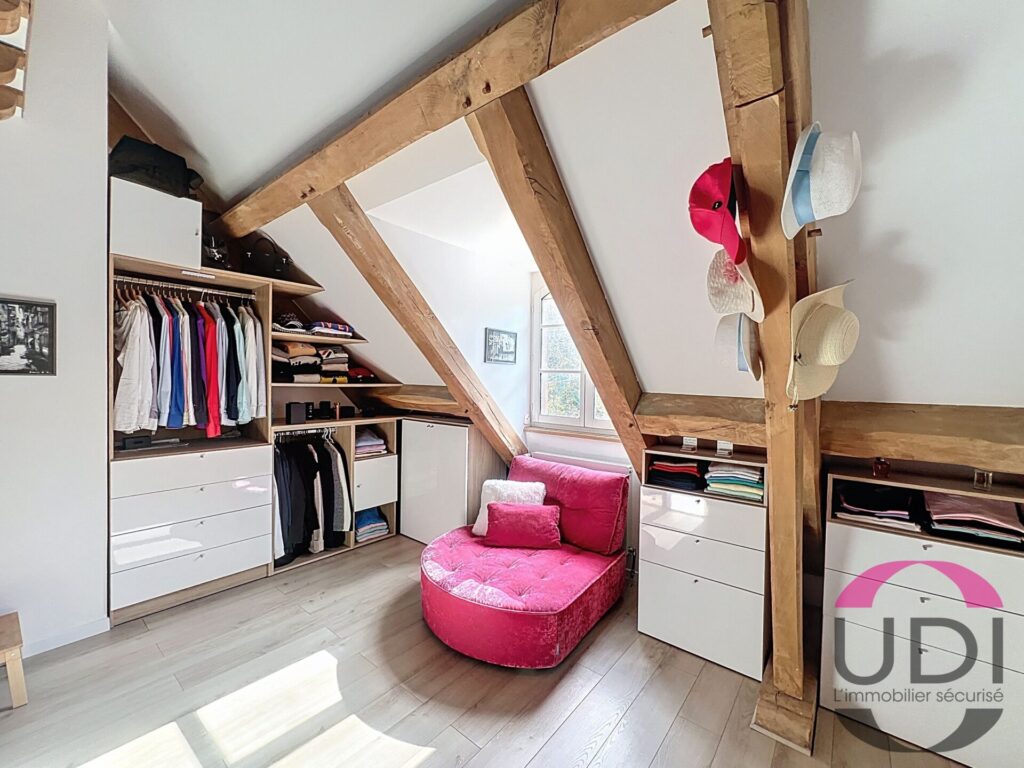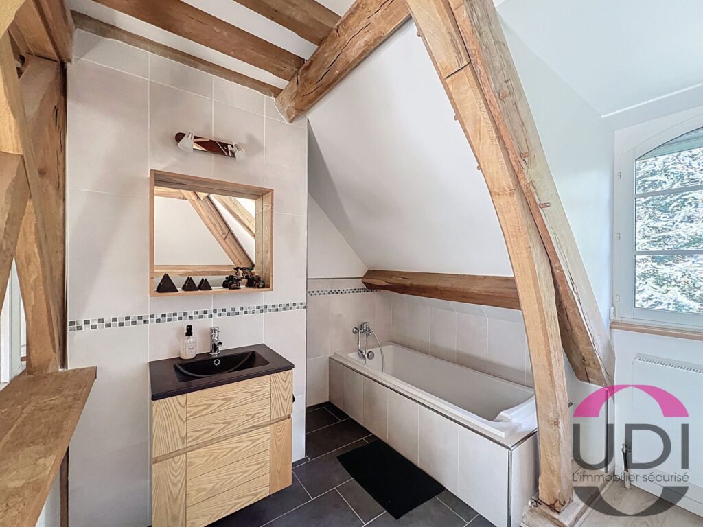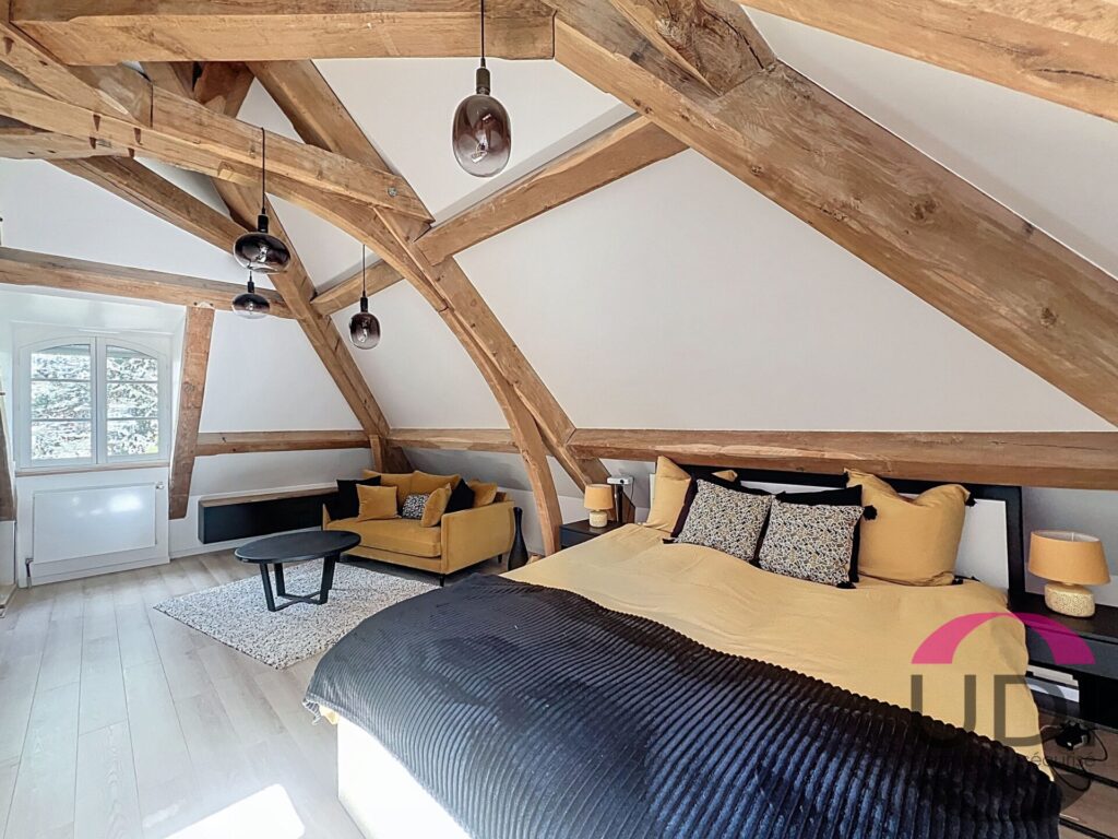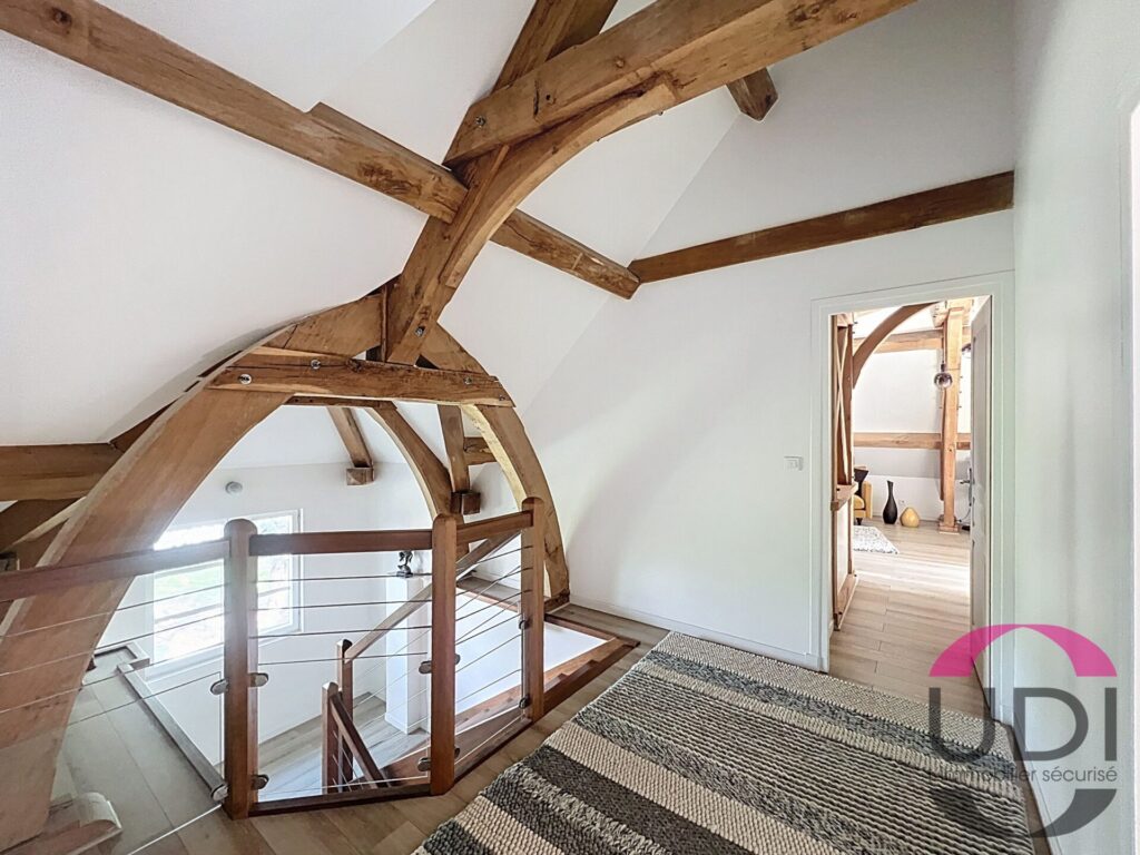 – À l’étage : grand palier, suite parentale avec salle de bains et Wc, deux grandes chambres avec une partie mezzanine, salle de bains et Wc.