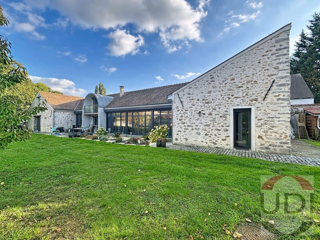 Superbe maison contemporaine de 2010 mêlant esprit loft et charme des pierres. Plus de 260 m² baignés de lumière grâce aux baies vitrées et à la pièce de vie cathédrale. Grande suite parentale, 3 chambres, mezzanine, cuisine design haut de gamme. Terrain paysagé de 1 600 m² clos de murs, sans vis-à-vis, dépendances et cave à vin. Prestations soignées : portail automatique, extérieurs aménagés et ambiance unique.