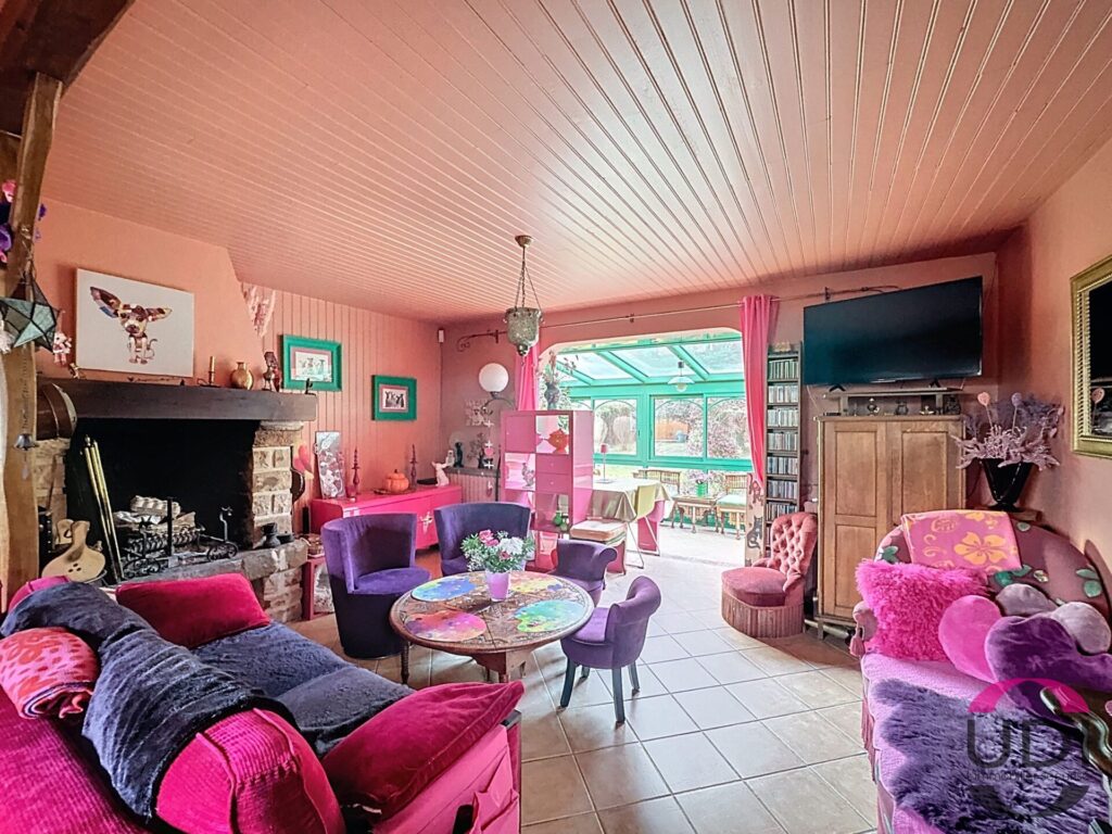 Une belle pièce à vivre de 41 m² avec cuisine ouverte, séjour avec cheminée et véranda s’ouvrant directement sur le jardin paysagé et la forêt : un véritable tableau vivant au fil des saisons. Deux chambres, une salle d’eau. Sous-sol total avec chaufferie, garage et remise. Nichée face à la forêt départementale des Grands Avaux, cette maison bénéficie d’un cadre naturel exceptionnel, sans vis-à-vis, où calme et verdure rythment le quotidien. Le tout posé sur un splendide terrain paysagé de 1 554 m², un vrai coin de paradis. Pergola. Chalet de jardin – Honoraires à la charge du Vendeur – Montant estimé des dépenses annuelles d’énergie pour un usage standard : Entre 2930 € et 4020 €. Prix moyens des énergies indexés sur les années 2021, 2022 et 2023 (abonnements compris). Logement à consommation énergétique excessive : Classe G – Les informations sur les risques auxquels ce bien est exposé sont disponibles sur le site Géorisques : www.georisques.gouv.fr