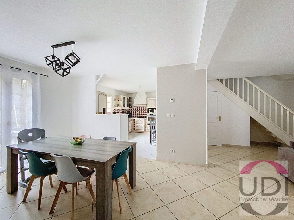 EXCLUSIVITE UDI – Sur la commune d’Itteville – Maison de 105m² habitables comprenant : Au Rez-de-Chaussée : une entrée avec placard donnant sur un salon salle à manger, une cuisine aménagée, un cellier, un WC indépendant.