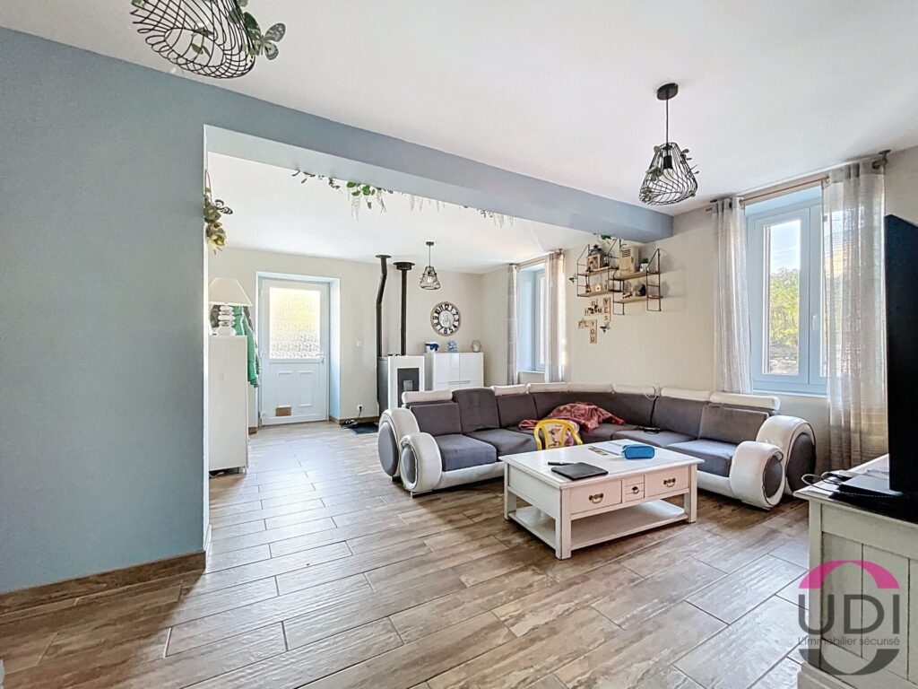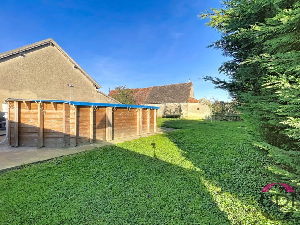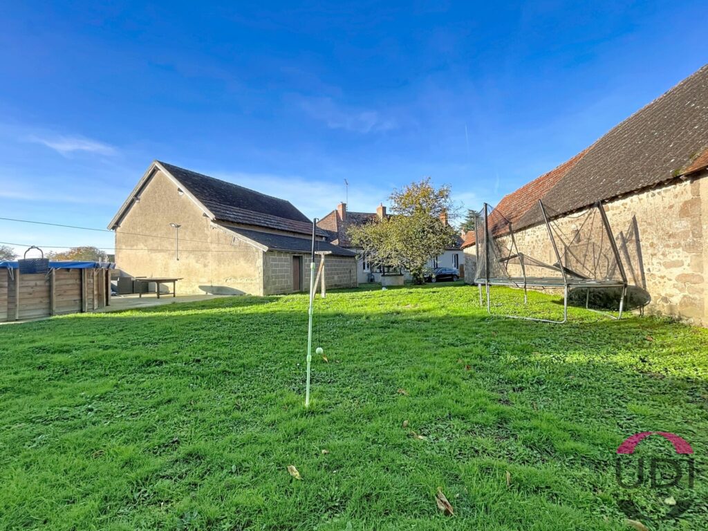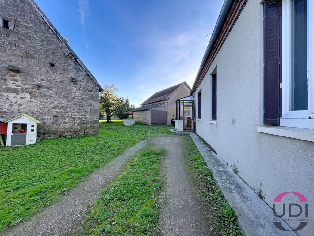 Maison à Haut-Bocage (Allier) de 135 m², en très bon état, comprenant 3 chambres, un grand séjour, une cuisine et une salle de bain. À l’extérieur : dépendance, garage et jardin privatif avec piscine.