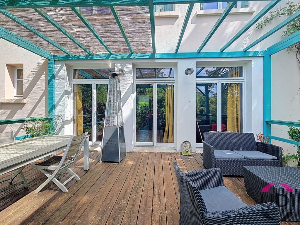 Au rez-de-chaussée, profitez d’un vaste espace de vie de plus de 60m² baigné de lumière, comprenant un séjour avec accès direct à la terrasse.