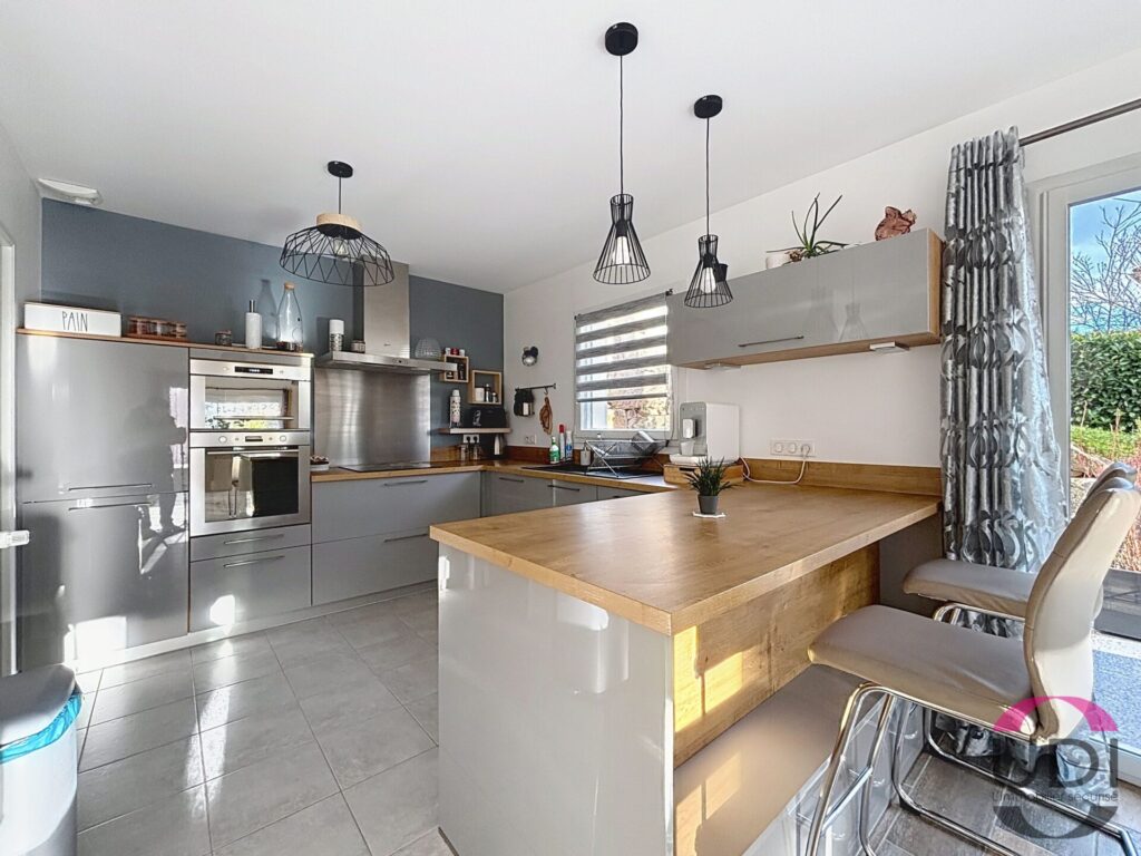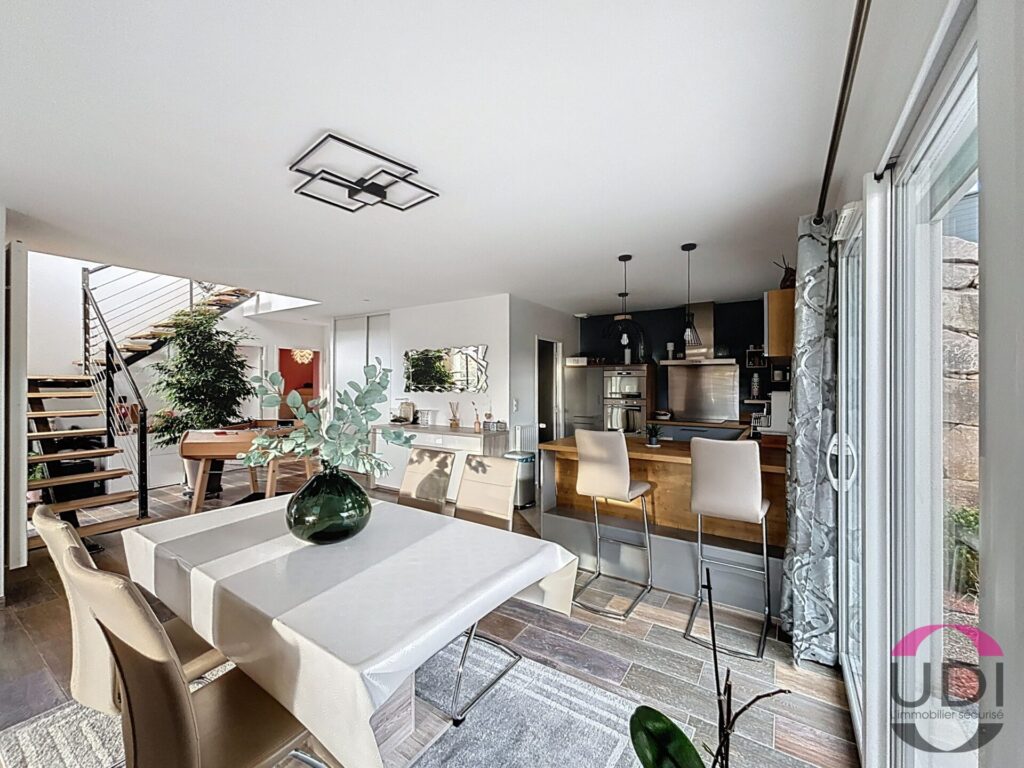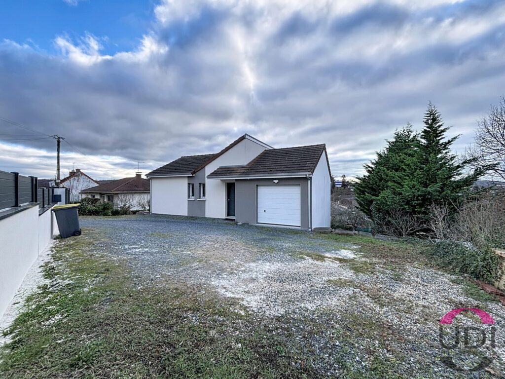 Montluçon – Venez découvrir cette jolie maison contemporaine construite en 2014, elle se compose, à l’étage, d’une entrée desservant un espace nuit comprenant une chambre avec dressing, un bureau, une salle d’eau ainsi que des toilettes indépendantes. En rez-de-jardin, vous trouverez une agréable pièce de vie de 65 m² avec cuisine équipée et aménagée, un salon avec accès direct à la terrasse, deux chambres, une salle d’eau, des toilettes indépendantes, une buanderie ainsi qu’un garage. Le tout est implanté sur un terrain clos de 842 m² avec portail électrique.