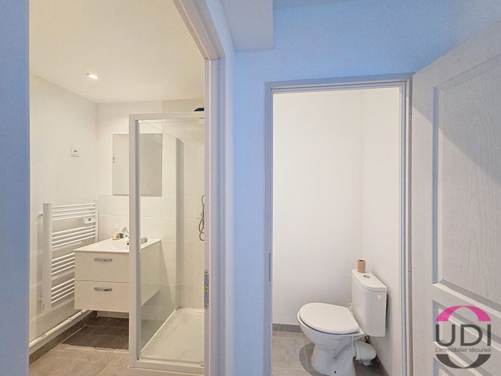 Appartement T2 meublé situé au RDC d’un petit immeuble. Il comprend une cuisine aménagée et équipée ouverte sur séjour, une salle d’eau, W.C. indépendant, une chambre, une pièce à usage de bureau. Terrasse. Cour commune. Pas de charges de copropriété. Chauffage, eau individuels.