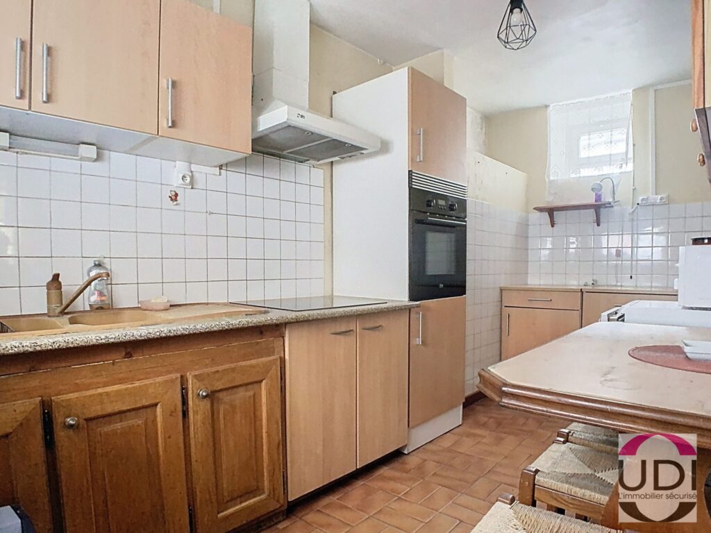 Maison en centre ville comprenant une entrée sur séjour, cuisine, salle d’eau avec wc, chambre, couloir avec accès extérieur sur arrière de la maison.