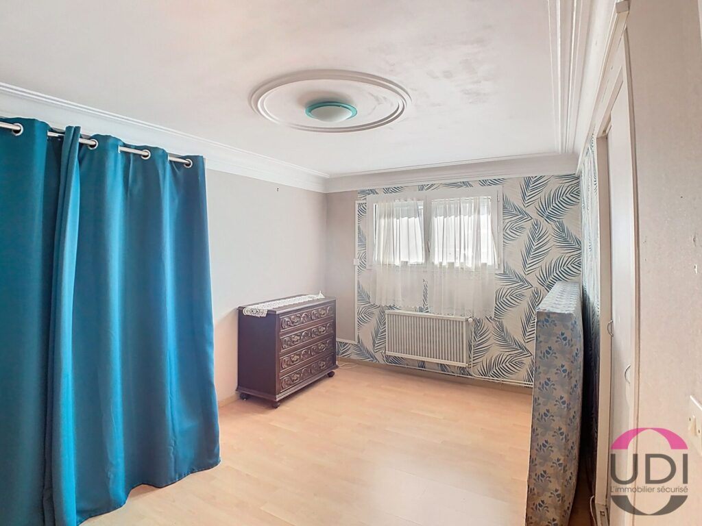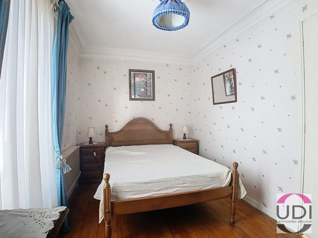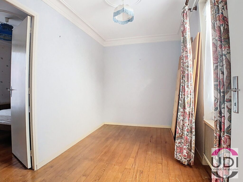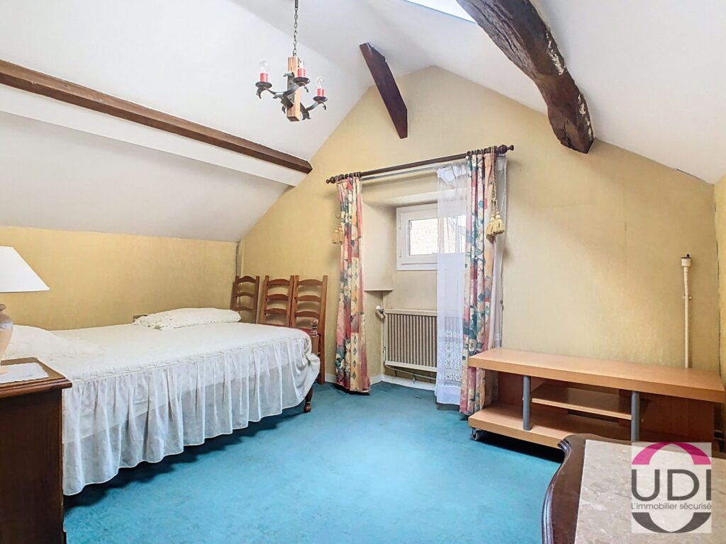 A l’étage deux chambres en enfilade, salle de bains avec wc, chambre.
