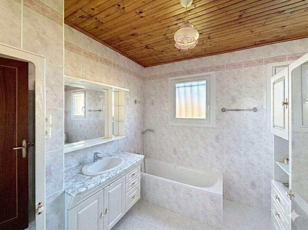 Côté confort, les investissements majeurs sont faits : la majorité des huisseries sont en aluminium double vitrage et volets neufs, chaudière à ventouse de 2 ans, ballon d’eau chaude neuf, tableau électrique refait et isolation du sous-sol effectuée, toiture révisée. Si l’intérieur nécessite un rafraîchissement décoratif, la structure est impeccable.