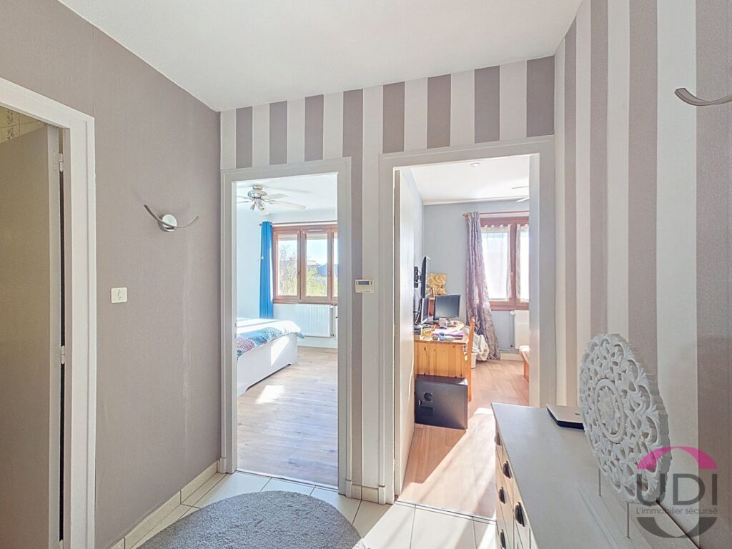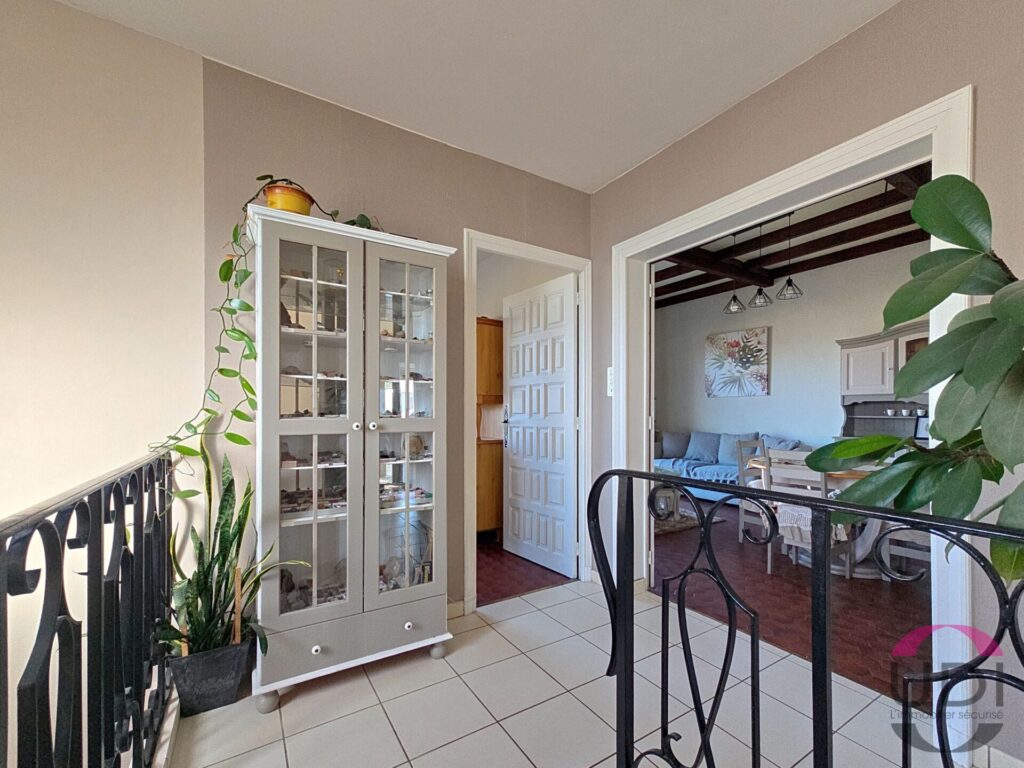 À l’étage, vous trouverez un séjour lumineux et une cuisine ouvrant tous deux sur un balcon, trois chambres ainsi qu’une salle d’eau.