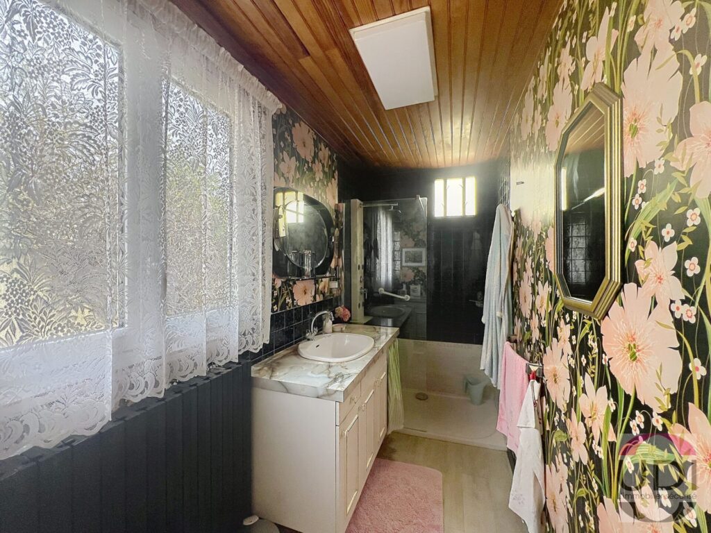 A l’étage : Un dégagement, une salle d’eau et 3 chambres