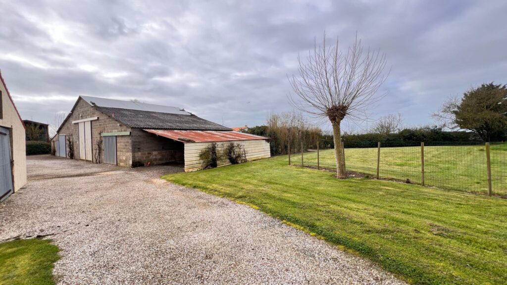 Implantée sur une parcelle arborée de plus de 3 140 m², la propriété dispose également d’un hangar d’environ 240 m², idéal pour un artisan, pour du stockage ou pour différents projets d’aménagement.