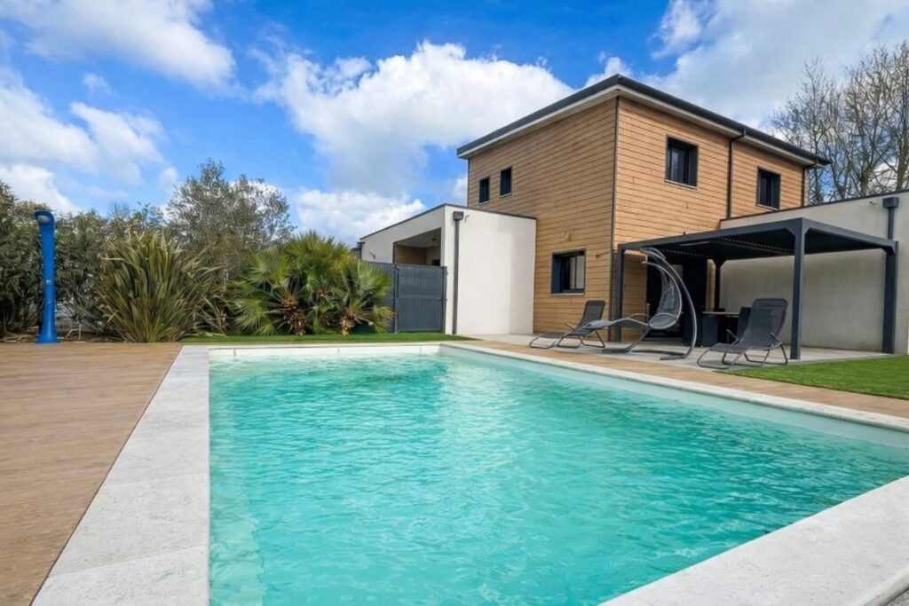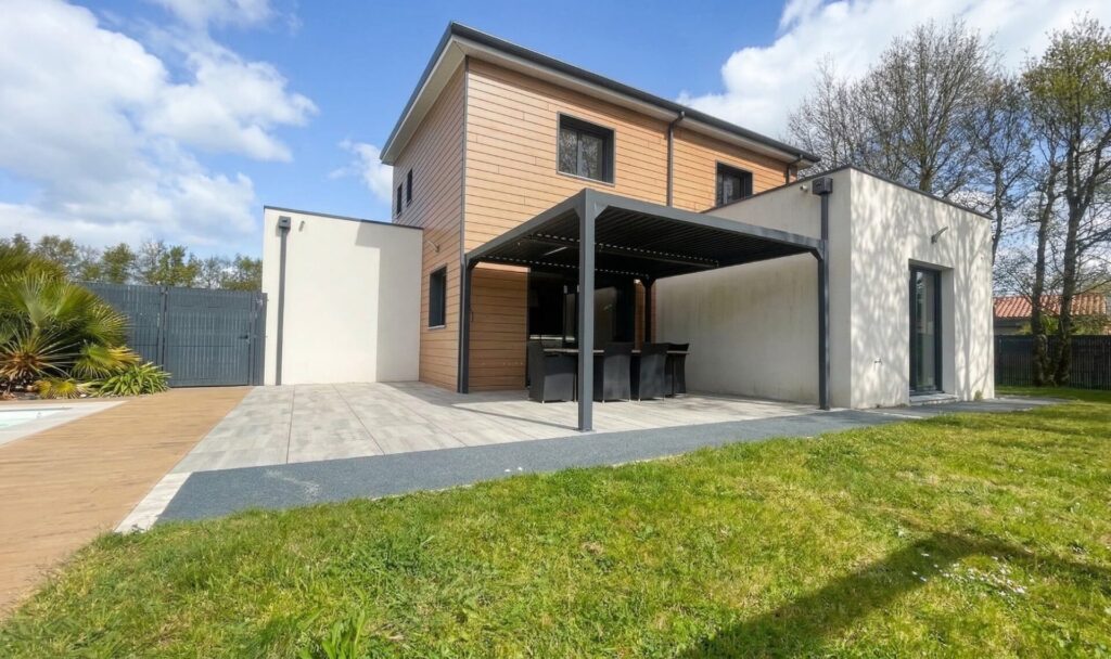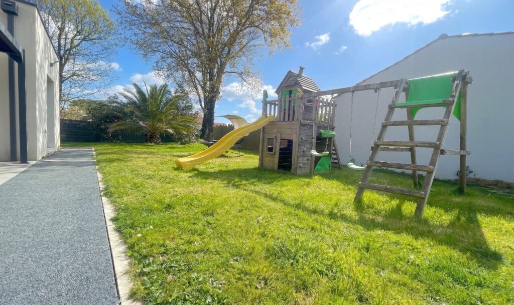 Côté extérieur, profitez d’un bel espace paysagé sur une parcelle de 807 m². Tout est prévu pour la détente : une piscine chauffée de 8×3,5 m avec son volet de protection, une pergola pour vos repas d’été et une structure de jeux pour les enfants.`