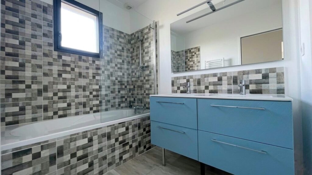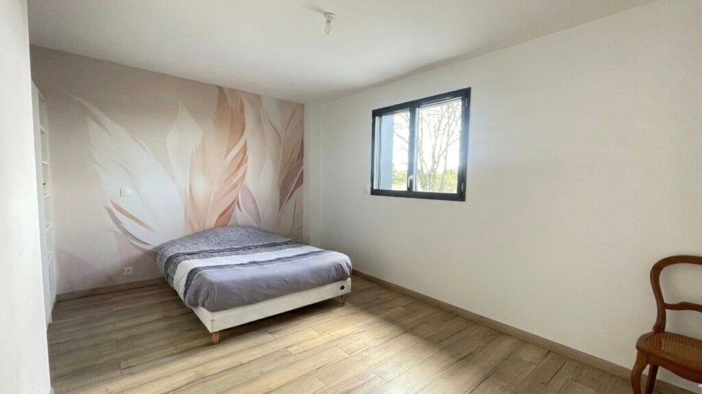 À l’étage, l’espace nuit se compose de trois belles chambres aux volumes généreux (16,1 m², 13,16 m² et 12,76 m²), complétées par une salle de bains avec double vasque et un WC séparé.