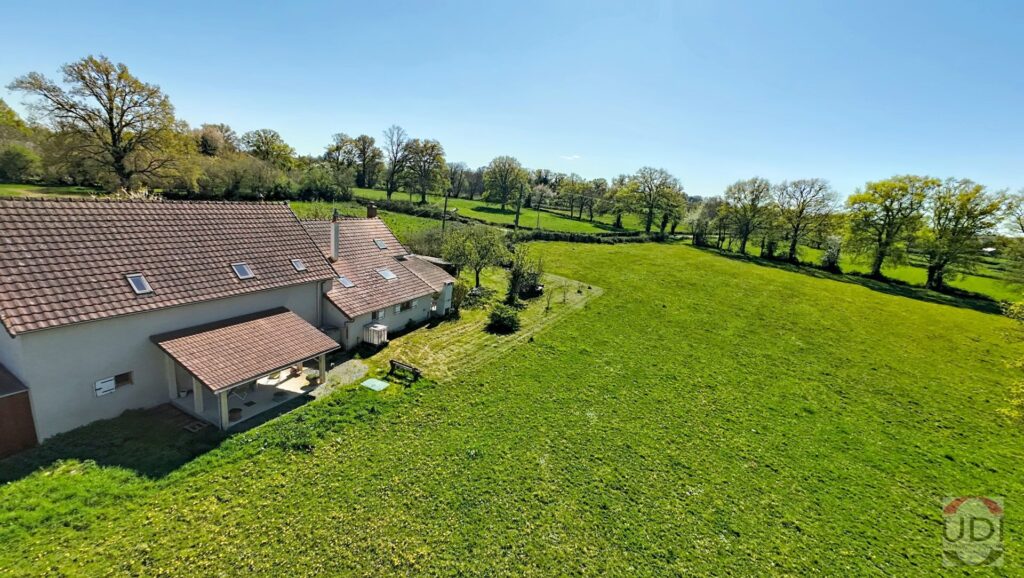 À l’extérieur, vous profiterez d’un terrain d’environ 1,7 hectare, idéal pour les amoureux de nature ou pour accueillir des animaux. En face de la maison, une dépendance indépendante avec four à pain vient compléter l’ensemble et apporte un véritable cachet.